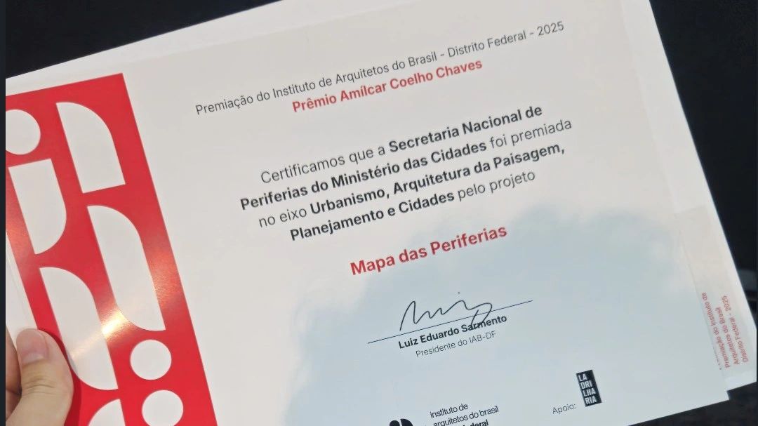 Em pleno dia do profissional de Arquitetura e Urbanismo, dia 15 de dezembro de 2025, eu me vi participando da cerimônia de premiação do IAB DF para, em nome de toda a equipe, receber o reconhecimento ao Mapa das Periferias e ao Mapeamento Popular, no eixo “Urbanismo, Planejamento, Paisagem e Cidades”.